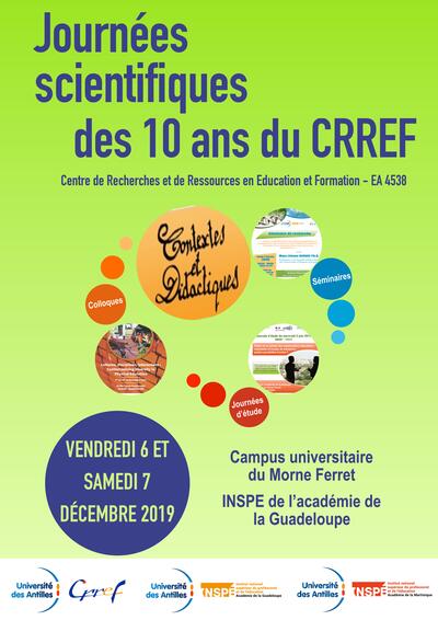 Dix ans après sa reconnaissance comme équipe d'accueil, le CRREF (Centre de Recherches et de Ressources en Education et Formation) a le plaisir de vous inviter aux journées scientifiques qu'il organise les 6 et 7 décembre 2019, avec le concours des INSPE des académies de la Guadeloupe et de la Martinique.